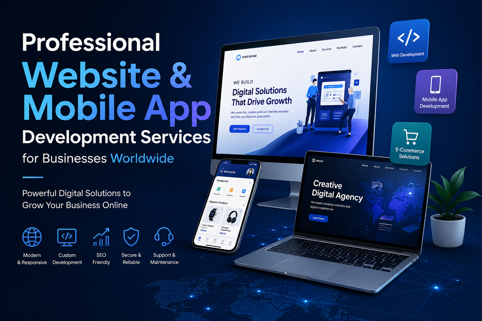Professional Website & Mobile App Development Services: Looking to grow your business online? We provide professional website development services, WordPress website development, e-commerce website solutions, and mobile app development services for businesses across India and worldwide.